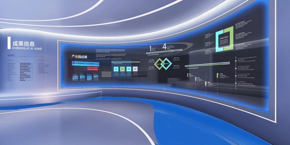 根據(jù)人力資源服務(wù)產(chǎn)業(yè)園的特點(diǎn),結(jié)合了江南元素水的特征,展示廳以流暢線型的造型風(fēng)格,科技手法的運(yùn)用,藍(lán)色,數(shù)字化,