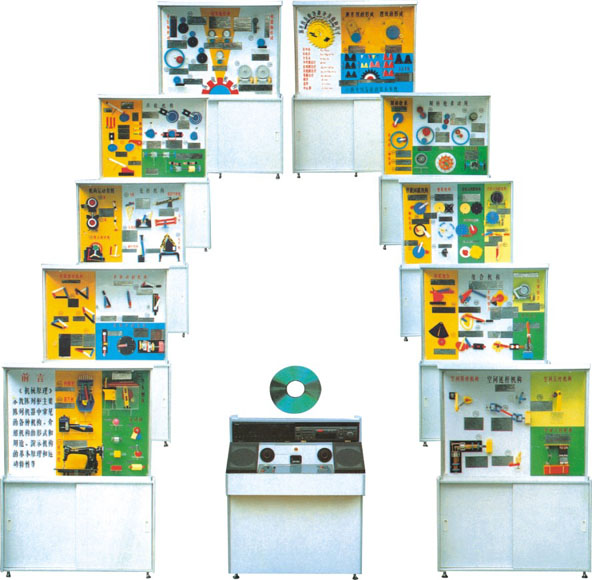 《機(jī)械原理》展示柜是根據(jù)大、中專院校、枝校、職業(yè)學(xué)校的機(jī)械原理教學(xué)大綱設(shè)計(jì)的電化教學(xué)設(shè)備。本套展示柜共分十個(gè)柜。